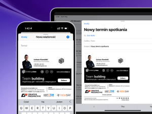 - ✔︎ Zdjęcie nadawcy – dodaj twarz pracownika do stopki. Opcjonalny retusz dostępny jako dodatek.